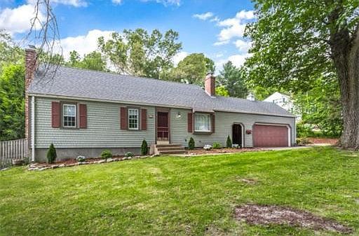 Spread out in this over sized cape with 2000+ sf of living space in a highly sought after neighborhood. Enjoy the fireplace living room, separate dining room and updated kitchen with eating area overlooking the well landscaped fenced yard. There are two first floor bedrooms and a full tile bath along with a sky lite breezeway and direct entry two car garage. The 2nd floor has a master suite with 3 closets (a walk in and two others)) and full bath with soaking tub and separate stall shower along with a 2nd large bedroom with his & her closets. The heated lower level has a finished family/ media room with recessed lights and wood/coal stove. Outside amenities include maintenance free vinyl siding, newer roof, window and composite two tier deck (20x10) plus an in ground pool, patio and two storage sheds. Must be seen