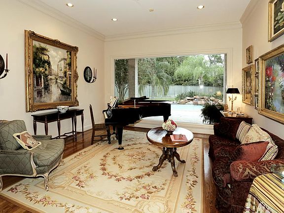 Beautiful custom built Sandalwood Home on a large cul-de-sac lot. This 5/5/3 home is 5,916 square feet on a 32,880 square foot lot. Has hardwood floors throughout, multi-piece crown molding and high ceilings. The master down with large en-suite master bath and adjacent study. The formal living, den and kitchen have spectacular views of the pool/spa and water feature and park like yard. Kitchen with stainless steel appliances and subzero. Large game room up. Spacious secondary bedrms with en-suite baths. 3 car garage.