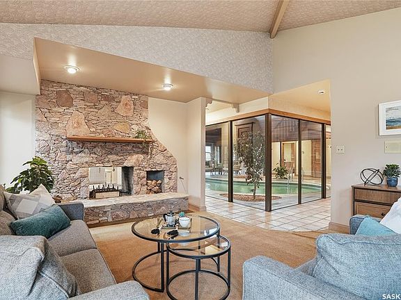 ONE OF A KIND HOME that you will not want to miss! 118 Lakeshore Terrace, a stunning 3,694 sq ft 2 storey backing Lakeview Pond! Pulling up, you are immediately met with sophisticated curb appeal, triple driveway & oversized front doors. Upon entering the spacious foyer, the glass windows & doors allow your eyes to catch magnificent view straight through your indoor pool room, to the park & the pond beyond. Making your way in, to find a classic sitting room with 2-way gas fireplace that shares with your formal dining. Next is your kitchen, offering plenty oak cabinetry, fridge, built in oven & microwave, built-in stovetop, tile backsplash, tile flooring, built in wine rack, as well as built-in shelving & a rare find: wood burning kitchen pot hanger! This homes unique features do not stop there! Behind the exquisite glass sliding doors is your indoor pool room. Featuring indoor pool, RI whirlpool, surrounded by tile floors, cedar walls following up to 17 ft high ceiling, displaying your astonishing backyard views. Coming around to your cozy den with gas fireplace, and built-in bookshelf. King accommodating primary bedroom that leads to 4-pc bath, with elegant gold fixtures, soaker tub, and glass shower. A second bedroom, access to your garage, a phone booth, and laundry, complete this floor. Coming up your grand staircase, you will find 2 additional bedrooms with floor to ceiling glass offering beautiful views overlooking the pool, as well as a 3-pc bath. Large, unfinished basement with wood fireplace, providing ample storage space, optional 5th bedroom development, & your utility area. Step outside to your concrete patio, or sit around the built-in, stone firepit with seating. Direct gate access to the walking path that surrounds the pond. Additional features include attached 31 X 26 garage, A/C, newer mechanical, & water softner. Close to multiple elementary schools, many amenities & quick access to Circle Drive. Incredible rare gem, with an unmatched location!