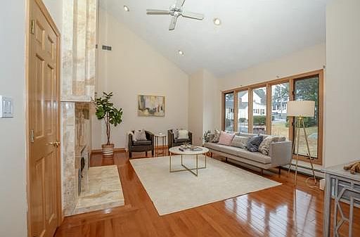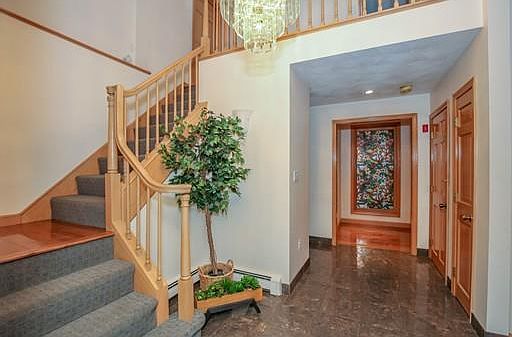 One of a kind CUSTOM BUILT CONTEMPORARY COLONIAL is great for entertaining! Home offers soaring ceilings in Living room & Family room,gorgeous maple floors & elegant 2 story entry w marble floors,balcony & lots of closets! 4 FULL baths with ceramic tile floors. 1st floor MASTER BEDROOM has a large bath with double vanity, full tub w shower PLUS a separate shower & a huge walk in closet w slider to a private deck.Upper level with balcony w fixed window light, 3 bedrooms with closets and a full bath w skylight & ceramic tile floor. Fully applianced kitchen has recessed lighting,a center island, lots of cabinets ,SS refrigerator, compactor, dishwasher, cook top & double oven. Sunny large dining room for entertaining also has a slider to deck.The finished lower level ( 1500sf) has a huge bonus room,lots of closets, 3/4 bath,wetbar & slider to a covered patio & private yard. NEW CIRCULAR DRIVEWAY & 2 DECKS! FHW HEAT- 8 YEARS,CENTRAL A/C.Close to LAHEY, Mall,3rd Ave,The District,RT 95/3