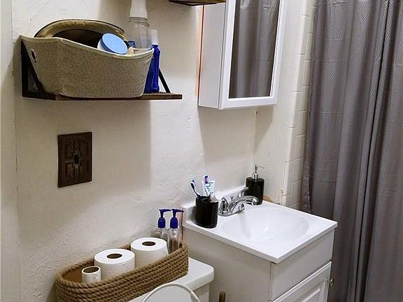 Situated on a corner lot, this home offers two generously sized living areas. Kitchen features classic cabinetry and will include a new range and refrigerator. Main floor also has a bedroom, full bath, laundry area, and enclosed porch. Upstairs offers two bedrooms, both with great closet space. Fenced yard with storage shed plus off-street parking. Property is currently rented at $925/month. Updates include: water heater and furnace in 2020, several new windows, and shed.