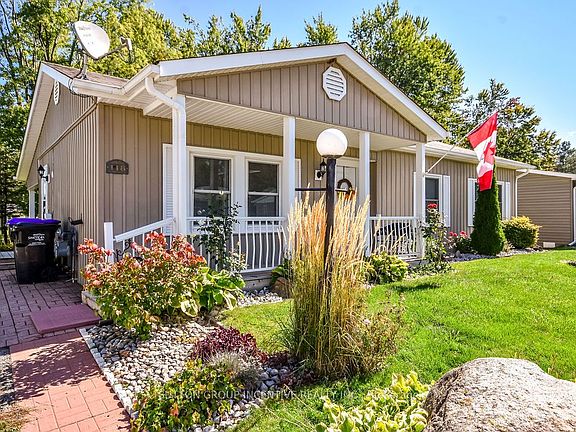 Located on quiet court part of the street. Well maintained & upgraded Sandlewood I plus "Florida Room" Model. Walkout from Florida room to covered patio which overlooks greenspace. Gas fireplace in Florida Room plus Laundry/storage room. New windows & storm doors-2010, Siding, Roof, Shingles & Front Porch - 2009. Front Living Room. Center Dining Room with Skylight. Bright Kitchen. Master with Large W/I Closet (7'9" x 7') & Entrance to 3pc updated Bathroom with Tube Skylight (bright all day). 2nd Bedroom with B/I Storage & Murphy Bed. Flexible Closing. Inc: Fridge, Stove, Dishwasher, Washer & Dryer, Chest Freezer, Shed. Outside storage room #822 to left of backyard. Adult community at Sandy Cove Acres offers an impressive array of amenities including two heated outdoor pools, a fully equipped fitness centre, a library, and several lively 3 clubhouses hosting social events, games, kitchen facilities, library, inside and outside shuffle board and so much more. Minutes from the sparkling shores of Lake Simcoe, mere moments from the conveniences of Innisfil's shopping, dining, and medical services, and quick access to Highway 400/11. Landlease property.