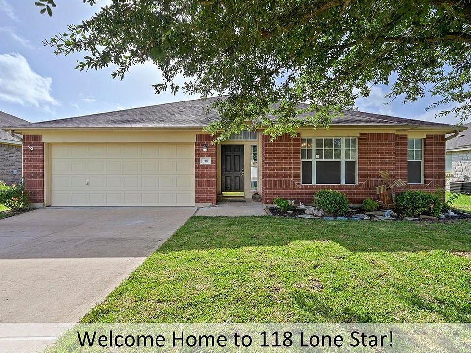 Nestled in the heart of Hutto, this inviting one-story home blends timeless charm with everyday convenience. With three sides brick and a spacious fenced yard graced by mature trees, this property offers both curb appeal and a peaceful outdoor escape. The automatic sprinkler system keeps the lawn lush, while a storage building provides practical space for your tools and toys. Step inside to discover an open-concept layout where the kitchen, breakfast nook, and living room flow effortlessly together—ideal for both quiet evenings and lively gatherings. The flex room just off the entry is currently styled as a formal dining area, but could easily be a home office, playroom, or second living space. The well-appointed kitchen features recent appliances, a cozy breakfast area, and bar-top seating perfect for morning coffee or casual dining. A corner fireplace adds a touch of warmth to the living area, and the full-view back door leads to enlarged patio spaces—ready for your next barbecue or night under the stars. The private primary suite offers a serene retreat with an ensuite bath that boasts a walk-in shower, soaking tub, double vanity, and a spacious walk-in closet. Two additional bedrooms and a full hall bath ensure comfort and space for family or guests. A large indoor laundry room adds everyday ease to your lifestyle. Located just minutes from the vibrant Hutto Co-Op District and the growing US 79 corridor, you'll enjoy quick access to local dining, shopping, and entertainment. Major roads including FM 685, SH 130, and I-95 make commuting a breeze—whether you're headed to Round Rock, Taylor, or Austin. This home is waiting for your special touch—don’t miss the opportunity to make it yours!