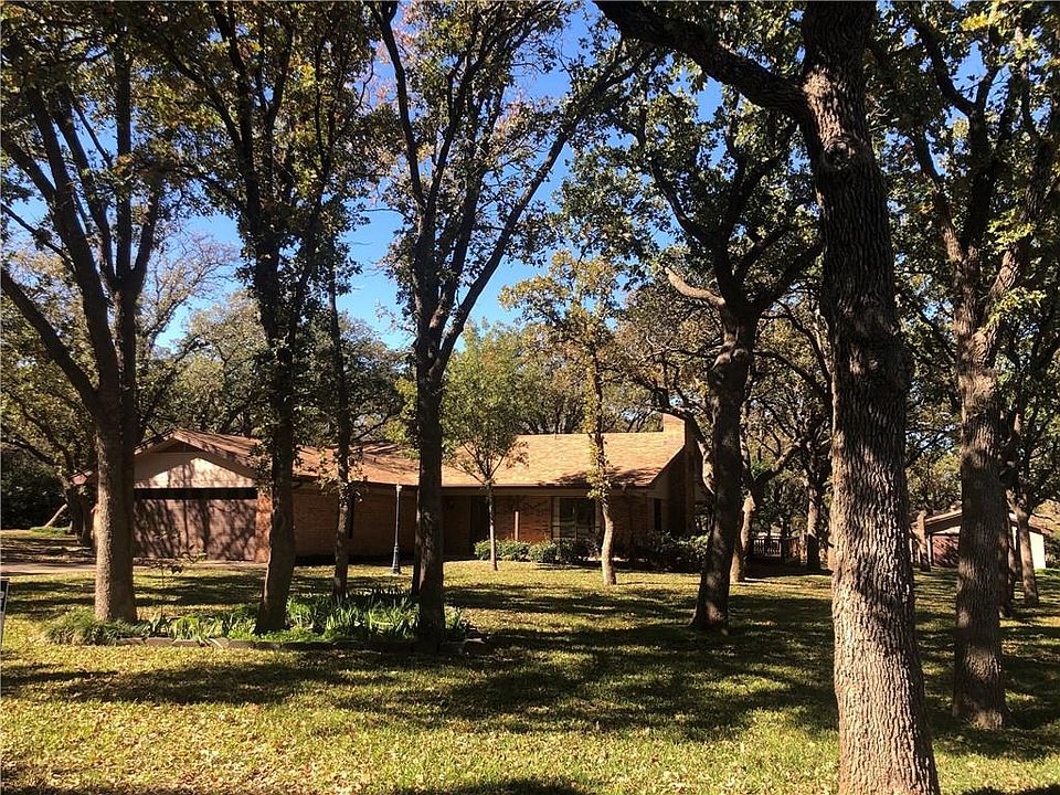 Located in Lakewood West subdivision-3 BR brick home located on 1.178 acres - 1.75 baths - 2 car garage - Large shop (24X38) with pass thru 10 ft. overhead doors (2) plus covered RV parking - Storage building - 1 car carport - Large covered patio with extended deck - Wooded lot - City water and Lakewood West watering system for lawn - Total electric - Living area with woodburning fireplace - Kitchen has bar area and large dining room - Lawn sprinkler system - Property taxes are $2665. (YCAD)