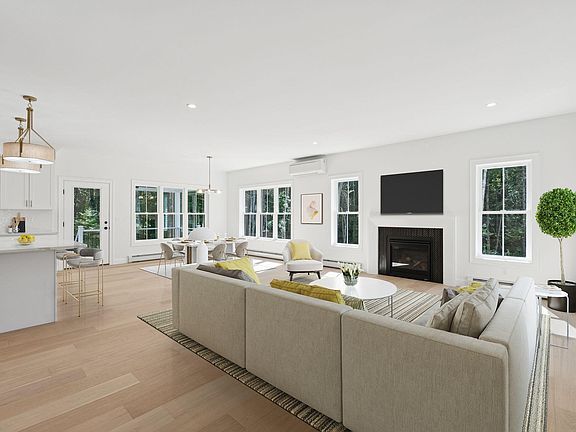 Almost complete and absolutely worth the wait!!! This stunning new build exemplifies exceptional craftsmanship, fine detail, and modern design. Set on over an acre in sought-after North Yarmouth, the home's charming board-and-batten siding, welcoming farmer's porch, and spacious two-car garage create an unforgettable first impression. Inside, nearly 2,800 sq. ft. of thoughtfully designed living space features 9-foot ceilings and abundant natural light. The open-concept main level centers around a dream kitchen with quartz countertops, a tiled backsplash, a large center island, and a walk-in butler's pantry; all flowing seamlessly to the dining area and sun-filled living room with a gas fireplace and custom herringbone surround. Step outside to a covered deck overlooking peaceful views of mature trees, perfect for year-round enjoyment. Upstairs, a striking staircase leads to four bedrooms, including a luxurious primary suite with a tray ceiling, cozy window bench, dual walk-in closets, and a spa-like bath with a tiled shower and double vanities. Three additional bedrooms, a full bath with double sinks, and a convenient laundry room complete the second floor.