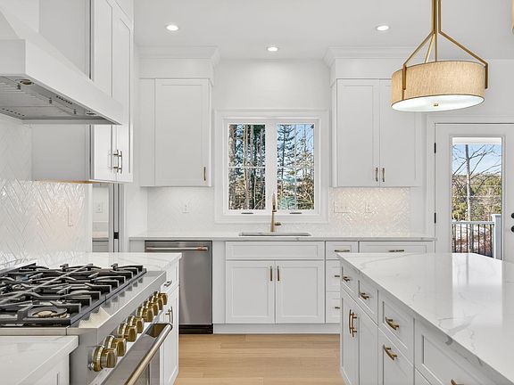 Fully complete and ready for immediate occupancy, this beautifully crafted new home offers the perfect blend of comfort, style, and everyday ease on over an acre in sought-after North Yarmouth. From the moment you arrive, the classic board-and-batten exterior, welcoming farmer's porch, and oversized two-car garage set a warm, timeless tone; inviting you to slow down and feel at home. Inside, nearly 2,800 SqFt of light-filled living space is designed for both relaxed daily living and effortless entertaining. 9' foot ceilings and an open-concept layout create an airy, connected feel, while the chef's kitchen becomes the heart of the home; featuring quartz countertops, a tiled backsplash, a generous center island, and a walk-in butler's pantry ideal for hosting gatherings or keeping life beautifully organized. The kitchen flows naturally into the dining area and the sun-drenched living room, where a gas fireplace with a custom herringbone surround invites cozy evenings in. Step outside to the covered deck and unwind while overlooking peaceful, wooded views; your own private retreat to enjoy in every season. Upstairs, a striking staircase leads to four inviting bedrooms, including a primary suite designed as a true escape. Tray ceilings, a charming window bench, dual walk-in closets, and a spa-inspired bath with a tiled shower and double vanities create a space where mornings feel calm and evenings feel indulgent. 3 additional bedrooms, a thoughtfully designed full bath with double sinks, and a conveniently located laundry room complete the upper level. The finished daylight basement expands your lifestyle options with flexible space perfect for movie nights, a home gym, playroom, or quiet retreat, along with ample storage and direct walk-out access to the backyard; ideal for indoor-outdoor living. Luxury and privacy, all just minutes from local amenities. This home is more than a place to live. It's a place to gather, relax, and truly enjoy every day!