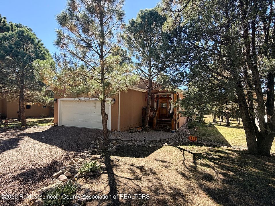 Alto One-Level Stucco Home with Golf Membership. Classy 3BR/2BA home with metal roof, 2-car garage and circular drive with brick paver entry sidewalk. Open floor plan with living area vaulted wood-accent ceiling and Chaska CSK gas log fireplace. Kitchen offers granite countertops, breakfast bar and stainless-style kitchen appliances. Spacious primary suite with deck access. Covered front and low-maintenance rear deck for relaxing and entertaining. Central heat/A/C, security system, water softener and RO. Convenient location and close to amenities.