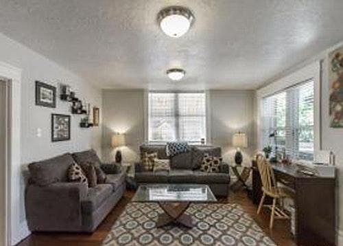 Available to show 6/20 REDUCED 1BR Apartment, New Kitchen, Downtown One bedroom/one bathroom ground level apartment available for rent in downtown Salt Lake. The apartment is right across the street from City Creek Park, one block from the Temple, two blocks from the Capitol, and just a few minutes walk to Harmons and downtown stores. The street and neighborhood are very quiet and the two other tenants in the apartment building are friendly. 750 square feet, and feels roomy. The building has a spacious fenced outdoor area with shade, a vegetable garden, and a patio; separate and secure storage, shared washer/dryer, and a front lawn. The kitchen was just remodeled and has plenty of room for a large kitchen table, as well as a large fridge, range, microwave. The living room has new floors is also roomy, and connects to the bedroom, which itself connects to an updated bathroom. The bedroom has newer carpet. The apartment has newer windows and is energy efficient.