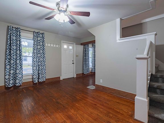 This 3 bedroom 1 bath home is move in ready. Front of home features a living room and a dining room with hardwood floors, move on back to the updated kitchen with all appliances included as well as washer and dryer. The back of the home has a nice family room with a electric fireplace/tv stand that is included. Upstairs you will find 2 additional bedrooms, one on the right and one on the left of the landing. Roof is only 6 years old, 200 amp breaker service. vinyl Replacement windows. Off Street parking