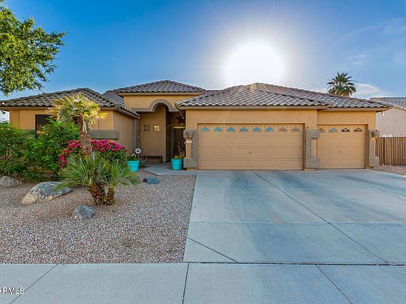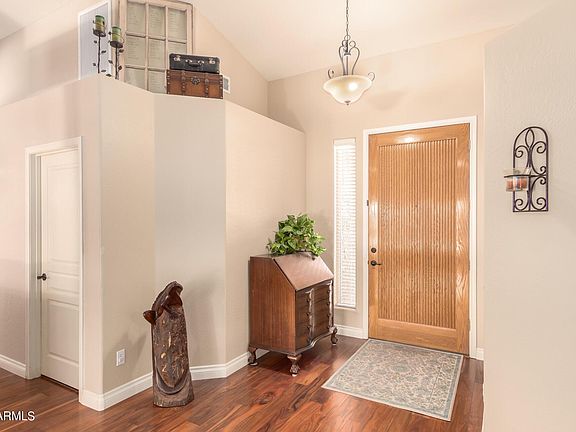 Incredible home in Holliday Farms is now available! Be welcomed into the light & bright spacious formal living & dining room with vaulted ceilings, beautiful engineered acacia hardwood flooring & decor paint throughout. Farmhouse style white kitchen features granite tile counters, travertine backsplash, island with breakfast bar, & gas range! Kitchen overlooks the family room with custom built in entertainment center with heated electric fireplace. Open concept floorplan with tons of windows makes entertaining a breeze and emphasizes the indoor-outdoor connection to the awesome backyard. Huge extended covered paver patio with multiple ceiling fans is great for staying cool while entertaining year-around! Gas firepit with gorgeous blue glass ties into the landscaping around the pool!