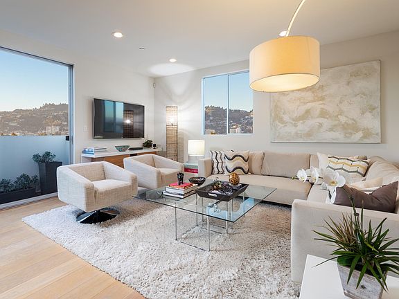 Amazing Location! Bright Luxury Penthouse with Views of City Lights and the Beautiful Hollywood Hills. Enjoy this Open Floor Plan in Exceptional Contemporary Style. Newer Construction Built In 2013. This Spacious 3 Bedroom & 3 Bathroom Unit Delivers A Wide Array Of Features & Amenities Including Grohe Bath Fixtures, Kohler Sinks, Italian Porcelain Tile, Wenge Wood Cabinets, GE Monogram Appliances, 7" Wide - French White Oak Wood Flooring, A Private Terrace, Laundry in Unit, Community Recreation Room & Sun Deck, Side by Side Parking, Low HOA, Walking distance to Restaurants, Trendy 3rd Street Shopping and Entertainment Galore.