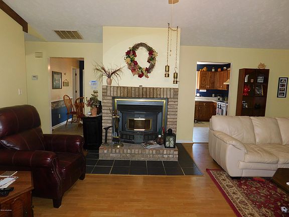This 1632 sq ft ranch style home in Big Oak Farms Subdivision offers a split floor plan with easy flow from the vaulted ceiling living room to the kitchen/dining area. The master suite is spacious with the master bath opening to the laundry area which is also accessible from the kitchen. There is a beautiful brick fireplace with a wood stove insert that will remain with the home. Enjoy evenings sitting on the screen back deck overlooking a beautiful lawn and tree line. This home has an attached garage as well as a detached 24x24 garage with concrete floor and electric. This property is located within minutes of Rough River Lake. Call today for a showing!