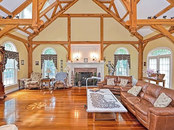 This extraordinary timber frame home is in a class by itself! Attention to quality and details in every, single room make all the difference! If you take your parties seriously you will enjoy the beautiful & open first floor living space! You'll love the warmth of the reproduction Rumford fireplace in a glorious livingroom filled with light & vaulted & beamed ceiling. Superb gourmet kitchen that any chef would adore w/ center island,tons of Cherry cabinetry & storage space plus breakfast bar for quick bites! It's all open to the formal diningroom & livingroom so the cook can be part of the party! Need an in home office? There is one here with plenty of space! Wait until you see the luxurious Mastersuite w/private bath, jetted tub, sitting/gym room & walk in closets! You can get away from it all! Hobbyists will marvel at the entire 3rd floor area to create anything you could dream of! Finished familyroom in the basement perfect for watching the game! Heated garage! 10 min. to MA Pike!