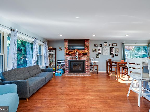 Wood burning fireplaceQuartz countertopsCozy family roomRemodeled half bathRemodeled bathroomHuge islandLaundry facilities