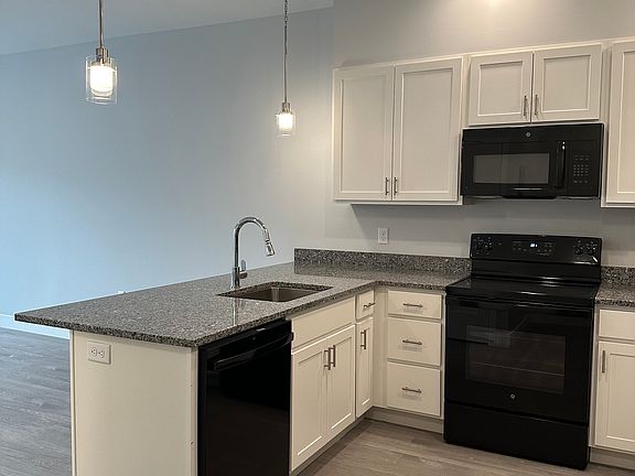 Modern bathroomEat-in kitchenGreat open layoutGranite countertopsJuliet balconySeated islandPlenty of cabinets
