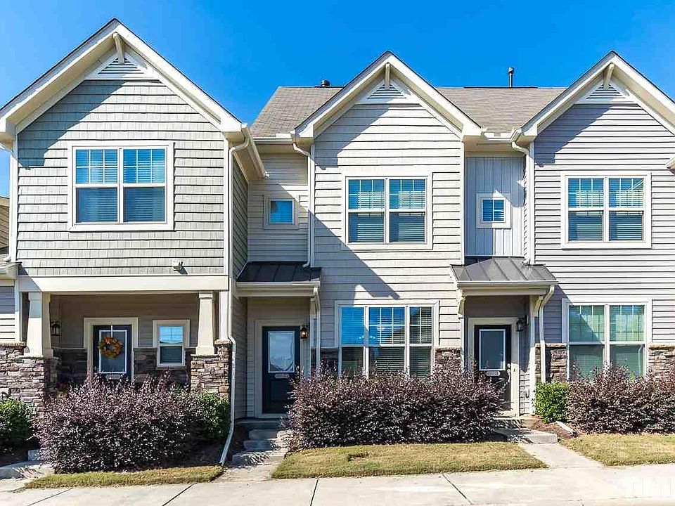 Beautiful loft-style townhouse with 2 bedrooms, 2 and a half bathrooms, large living area with large TV, wood floors, high ceilings, granite countertops, stainless steel appliances, clothes washer and dryer, storage room, and assigned parking spaces. In the beautiful Thompson Ridge development, where amenities include a gym, a swimming pool, and a park. Very close to Duke, freeway, buses, and downtown Durham. Available now. Not furnished.