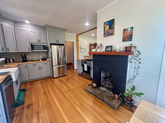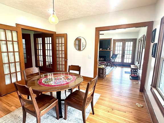 This exceptional property is ready for you! Every corner holds an exciting feature. You'll appreciate the restored hardwood floors, the custom kitchen featuring a farmhouse sink and butcher block countertops, and the tile walk-in showers. The original French doors with glass knobs and the penny tiles in the entrance add character, while the beautiful staircase displays a craftsman-style railing. The home office features wormy chestnut wood on the walls, and the bench seating under the windows creates a lounge vibe. Enjoy the covered front porch or relax on the large patio in the fenced backyard. The list of features is extensive! Located on a dead-end road, this home offers tranquility with a mountain view, all while being conveniently situated within city limits.