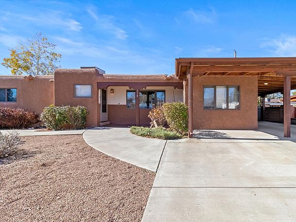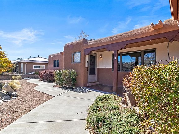 Nestled in the desirable Casa Solana neighborhood, this tastefully updated home offers views of the Sangre de Cristo Mountains from the dining and living areas. Inside, you’ll find wood floors and updated bathrooms that add warmth and charm, complemented by a modern kitchen equipped with high-end appliances, a convection oven, and sleek quartz countertops. The property boasts energy-efficient solar panels, a drip irrigation system for its low maintenance xeriscape landscaping, and an updated front wall for added privacy. Enjoy year-round comfort with recently added mini splits, Anderson windows, and Hunter Douglas window treatments. Outdoor living is made easy with an expansive Trex deck in the backyard, perfect for entertaining. A fully insulated, enclosed shed with electricity adds versatile space for hobbies or storage. The parapet walls were freshly re-done in 2023, ensuring a well-maintained exterior. This Casa Solana gem is a rare blend of classic charm, modern updates, and thoughtfully designed outdoor spaces. Close to shopping, the historic Plaza, and community trails all without a HOA! Don’t miss your chance to call this stunning property home! Schedule a private showing today!