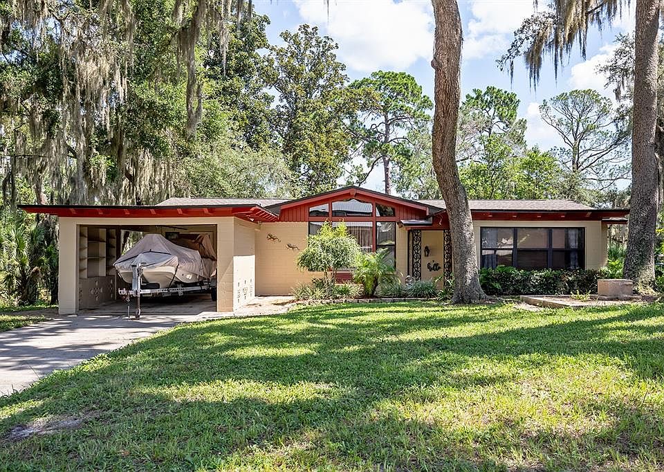 Rare opportunity to own a mid-century lake home, over a half acre of land, and move-in ready. A feeling of peace and tranquility will wash over you when walking through this home. Finding a lake with this much privacy is not easy. The exterior is quaint and has an inviting curb appeal. Freshly trimmed hedges lead you in. Upon entry you’ll see how the flow of the home was well thought out. Several different living spaces all connect the heart of the home. Neutral paint throughout will add to the lightness. The main bath was just recently renovated and has an idyllic lake view as well. The kitchen features granite counters, real wood cabinets, and tile backsplash. The kitchen's breakfast bar is a nice place to enjoy a coffee while looking out of your double pane windows of the neighboring sunroom, and out to your patio, backyard, and lakefront. A new roof was installed in 2022. New a/c in 2023. Mid-century construction ensures solid, concrete block walls, good insulation, and sturdy craftsmanship. There is a very nice office up front, creating a lovely nook. The family room has vaulted ceilings with exposed wood beams, giving an open cabin feel. The open kitchen concept allows entertaining to flow and lake views to be enjoyed from various sitting areas. The exterior of home was repainted in 2023. Lakefront has recently been cleared to allow for maximum enjoyment. This area of Debary is very tranquil and nice to drive through. You are far enough away from the hustle and bustle without compromising on being close enough to all the desired amenities. Stake your claim.