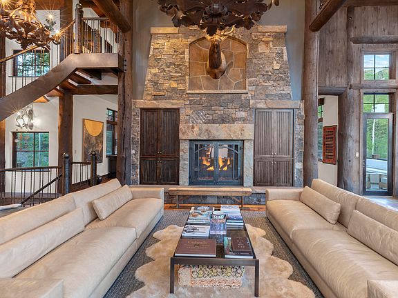 Private yet convenient! This exquisite mountain estate borders the Telluride Ski Area and offers great early season ski access and biking off of Chair 4. In the summer, walk to the Village Core restaurants and shops, then retreat back to your secluded enclave. The 7,572 square foot residence features 6 bedrooms with 6 ensuite bathrooms, grand vaulted ceilings, gorgeous hardwood floors, four gas fireplaces, a main floor primary bedroom, plus a separate family room with pool table and bar on the lower level. Take in brilliant sunsets and rare views of Gold Hill, Prospect Ridge, and Palmyra Peak from the expansive decks. Sold fully furnished, this custom home punctuated by fine finishes and excellent craftsmanship, is a gracious, turn-key mountain retreat.
