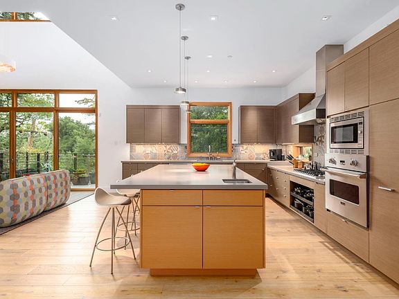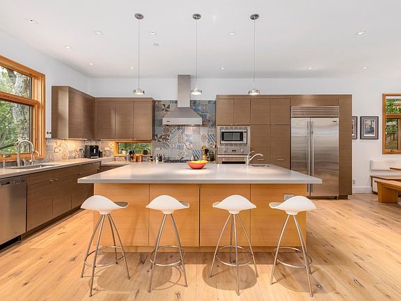 Architectural Elegance in the Beauty of Nature. Perched on a hillside, this architectural home showcases its verdant property, without compromising on intricate details or luxury amenities. A striking steel staircase provides access to all 3,500SF of living space, inclusive of 3 beds & 3 baths. The open main living/dining area is highlighted by a double-height ceiling and dramatic windows, grounded by a chef-grade kitchen equipped with stainless steel appliances, stone countertops, and custom cabinets. Glass doors provide access to the private tiered yard and patios with mature plantings and a relaxing spa. Dual secondary living spaces, a secondary bedroom, office and full bathroom complete the first two floors. On the top floor of the home sits a secondary bedroom and living space, full bathroom, and laundry room, all next to the primary suite which features a bathroom with jacuzzi tub, walk-in closet, and private balcony. Smart home tech, security system, electric car charging...