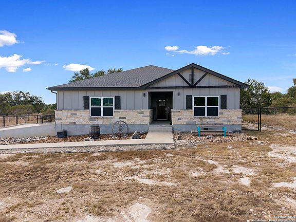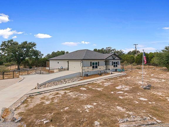 Discover peaceful living in the Texas Hill Country with this 1,998 sq. ft. custom home, nestled on over an acre in a gated community with private river access. Just 6 years old, this thoughtfully designed residence features a desirable split floor plan and timeless finishes throughout. The inviting kitchen offers granite countertops and ample storage, opening to spacious living areas perfect for gathering. The oversized primary suite is a true retreat, complete with a spa-like bath boasting a large soaking tub, walk-in shower, dual vanities, and generous walk-in closet. Outdoors, enjoy a fully fenced yard, mature trees, and a covered back porch where you can relax while watching the deer roam. With neighborhood amenities and a serene setting, this property blends privacy, nature, and comfort-yet keeps you within easy reach of all that Spring Branch and the Hill Country have to offer.