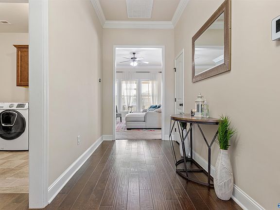 Fantastic full brick home situated on spacious privacy fenced lot just minutes to Redstone Arsenal's Gate 7. It showcases an open-plan layout among the living room, modern kitchen (w/ tile backsplash, large island & stainless appliances), & dining/breakfast room, which provides direct access to the covered screened-in porch in an ideal set-up for indoor-outdoor entertaining! Beautiful 10' ceilings in living areas, spacious rooms throughout & smooth ceilings. The owner's suite is situated at the back of the home for added privacy with w/separate shower and whirlpool tub in the ensuite. Laundry room with cabinets and shelving boasts access to the master closet. This home is move i