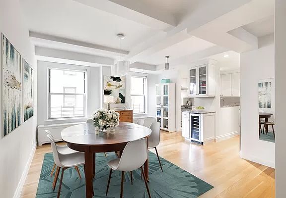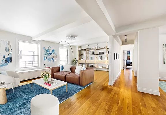 Architecturally significant and spacious prewar three bedroom, two bathroom home in immaculate condition in one of the West Side's premier buildings. Infrastructure interior renovations include new electric and plumbing, white hardwood oak floors, through-the-wall air conditioning, renovated kitchen and bathrooms, built-in storage and shelving, custom closets with automatic lighting, new hardware throughout, and new solid hardwood doors. The expansive side-by-side living and dining areas, with high-beamed ceilings, have a fabulous flow for gathering and entertaining. The open chef's kitchen is renovated with soft-close white hardwood cabinetry, vogue marble counters, a vented washer/dryer, vented range hood, Jenn-Air fridge, GE five-burner range, built-in GE microwave, deep Grohe sink, Bosch dishwasher, and wine fridge. There is an abundance of storage and counter space, and the living/dining and kitchen space is loft-like, warm and welcoming. Every room is generous in size including an oversized corner master bedroom which has a wall of closets, a reading nook, and three large windows overlooking serene townhouse gardens. The en-suite windowed marble master bathroom features heated floors, a glass walk-in rain shower, and storage. The second bathroom, also windowed, has heated floors, storage, and a large bathtub. 110-118 Riverside Tenants Corp. is a full-service, pet-friendly cooperative with only two homes per landing, full-time doorman, fitness center, playroom, ping pong, central laundry, storage, and live-in superintendent. Comprising two buildings, 110-118 Riverside Drive was built in 1929 in the Renaissance Revival style by famed NY architects Gronenberg & Leuchtag. Incorporated in 1969, this one of the most established co-ops in the city. Maximum financing is 70% with a fixed-rate mortgage and 60% with an adjustable-rate mortgage. Guarantors, co-purchasing, and gifting permitted on a case-by-case basis. Sorry, no Pied a Terre permitted. There is a flip tax of 2%. The physical and financial health of the co-op could not be stronger, with unusually low maintenance, and work such as new dual-fuel state-of-the-art boilers recently installed with no assessment to the shareholders. Using natural gas is expected to reduce the building's heating costs. Situated on a prime Upper West Side tree-lined street directly across from Riverside Park and in the heart of the West Side, next to Zabar's, the best playgrounds, the entrance to the West Side Highway, various buses including crosstown on both 79th and 86th streets, the 1 train on Broadway, and the B and C trains on Central Park West. Riverside Park and the Hudson River Waterfront Greenway are your backyard with multiple dog runs, the 79th Street boat basin caf (currently closed for renovation), and the many significant historical monuments found along the park's perimeter.