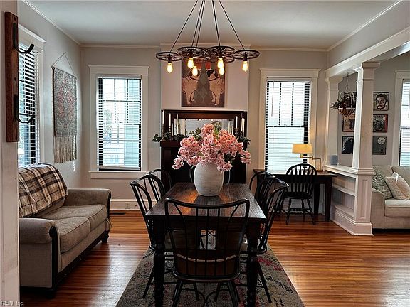Charming and tastefully updated home with gorgeous hardwood floors throughout, beautiful French doors, 9 ft ceilings, very spacious and open layout, first floor laundry/pantry room off kitchen, large multi-purpose mud room. Located in a historical district conveniently near the Naval Hospital, restaurants, shopping, and interstates for better commuting. Recent improvements include ALL new plumbing 2019, pergola/deck 2019, water heater 2021, new windows 2022, HVAC 2020, new front porch 2022, exterior painted and tin roof recoated 2023. Truly turn key.
