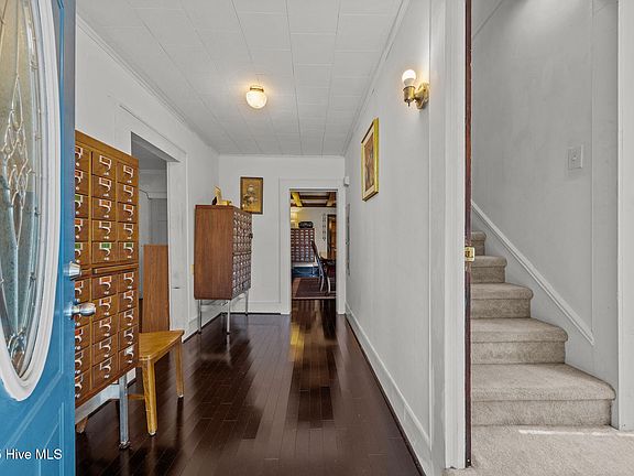 Steeped in history and Southern charm, the Theophilus Henry Woodley House (C. 1896) stands proudly at the corner of Broad Street and Highway 64, formerly Scuppernong Road. An inviting beacon of warm hospitality welcoming visitors to Columbia's storied downtown and the scenic Gateway to the Outer Banks. This distinguished three-story residence blends timeless architectural character with modern livability. The inviting front enclosed porch and classic lines reflect a bygone era, while thoughtful updates make it a comfortable home for today's lifestyle. The main level features spacious living areas, laundry hookups, and a flexible rear storage room that—with simple enhancements—could easily serve as a fifth bedroom or home office. The spacious formal dining room—with its proud exposed beams— has entertained more than a century's worth of cherished gatherings rich with warmth, flavor, and family. A separate entrance and covered stairway lead upstairs to a bright, private space with two generous bedrooms and two full baths, offering an ideal setup for a bed & breakfast, long-term rental, or guest quarters. Large bedrooms throughout the home provide comfort and versatility, and a fully floored, walk-up attic offers abundant storage or potential for future expansion. From this prime location, you're just a short stroll to Columbia's restaurants, boutique shops, the renowned Pocosin Arts Center, and the scenic boardwalks along the Scuppernong River. Outdoor enthusiasts will also appreciate proximity to the Pocosin Lakes National Wildlife Refuge—home to some of the most breathtaking natural landscapes in eastern North Carolina. Here's your chance not just to own a home, but to become part of Columbia's story—where history, charm, and opportunity meet in the heart of downtown.