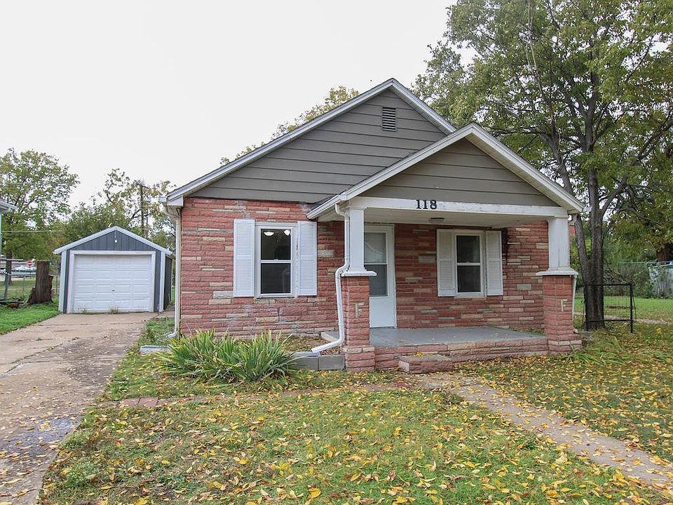 Charming 2-bedroom, 1-bath home featuring brick and metal siding with 880 sq. ft. of living space. Enjoy a nice dining area, detached garage, and a spacious backyard with convenient alley access. Great option for a first home, downsizing, or investment property!