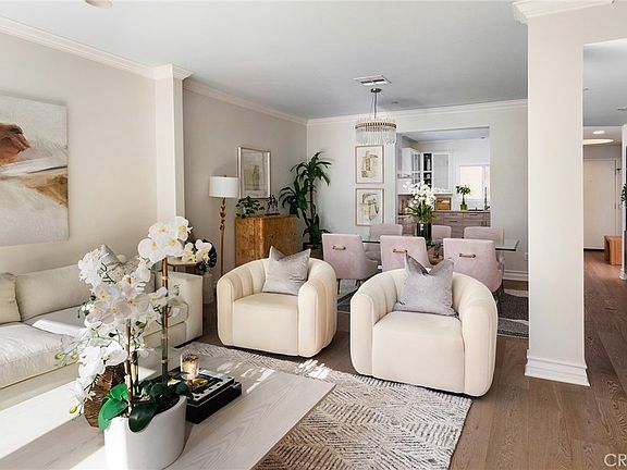 Welcome to this stunning sun-drenched oasis in the heart of West Hollywood. This immaculate 3-bedroom, 2.5-bathroom condo epitomizes luxury living and PRIME LOCATION! Upon entering, you'll be captivated by the natural light that pours in through large windows, creating a warm and inviting atmosphere. This home is adorned with wide planked French White Oak flooring, high ceilings, crown molding and recessed lighting throughout. The spacious floorplan flows nicely with the living room, dining room and kitchen creating an elegant open concept living space. The chef’s kitchen is a dream, featuring top-of-the-line Thermador appliances, custom cabinetry, and a soft stone countertop. All three bedrooms are located to the left of the entertainment area making this the ideal floorplan. The primary suite is a true retreat with a fireplace, a balcony facing the street, a huge walk-in closet and its own private en-suite bathroom. The primary bathroom has a gorgeous penny tile floor, a luxurious soaking tub, a separate glass-enclosed shower with pebble flooring, and double vanities. The other 2 bedrooms are a sanctuary, offering ample space and generous closets. The full bathroom near the second bedroom is beautifully appointed, featuring contemporary fixtures, chic tiling, and spa-like touches with the shower/tub combo. The large powder room has a stylish vanity and sophisticated lighting to round out the interior of this luxurious home!