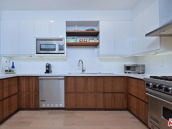 Beautifully upgraded, 3-bedroom, 3 bath single level condo located in one of the city's most sought after locations. The cook's kitchen has been thoughtfully remodeled featuring custom cabinetry, drawers, pantry and gorgeous, Ceasarstone Calcutta Quartz counter tops w/ waterfall feature on breakfast bar. Viking Appliances (stove, dishwasher & microwave), & Subzero refrigerator complete the space. Bright, open living, dining area with wide planked French white oak flooring, high ceilings, fireplace, crown moldings and private balcony. Master suite retreat with inviting fireplace, private balcony, en suite remodeled bath with floating vanity, built in tub & shower finished with beautiful Carerra marble, dual, extra-large walk-in closets. 2 Additional bedrooms are gracious in size and closet space. Side by side laundry closet with storage in unit. One block west of world-renowned Robertson Blvd shops and restaurants, walk to Cedars Sinai, Beverly Center, Bristol Farms, Third Street e