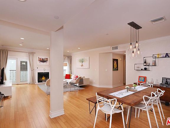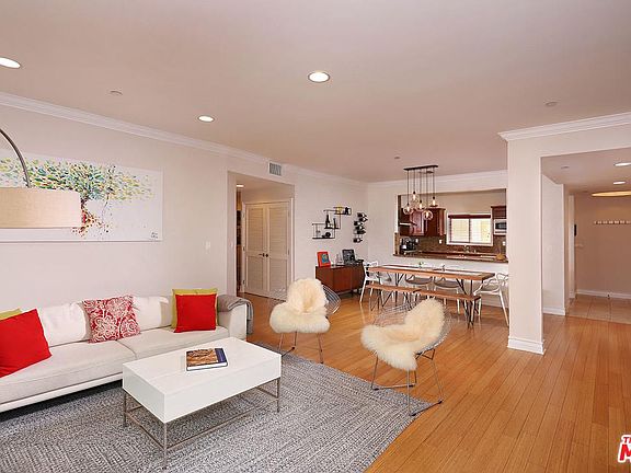 Peaceful, very quiet, SINGLE LEVEL stunner. RARE 3 Bedrooms, 3 Bathrooms, move in ready, with open floor plan, Washer & Dryer, 2 Fireplaces, 2 parking spaces, a small work out room & it's centrally located to the best of everything LA has to offer! The kitchen is a chefs dream come true, w/ Viking appliances, Cherry Italian wood cabinets & wide granite countertops - all open to the dining & living areas. Perfect home for entertaining! Great finishes throughout, such as: bamboo wood flooring in living & dining areas, crown molding, high ceilings w/ recessed lighting, new double paned glass sliding doors, huge master walk in closet, and so much more! This well maintained building is situated on a peaceful tree lined street & offers a gated garage with ample guest parking. 1 block to Robertson Blvd shops & restaurants, super close to Cedars Sinai, Trader Joes, The Four Seasons Hotel & much more. HOA dues includes Earthquake insurance.