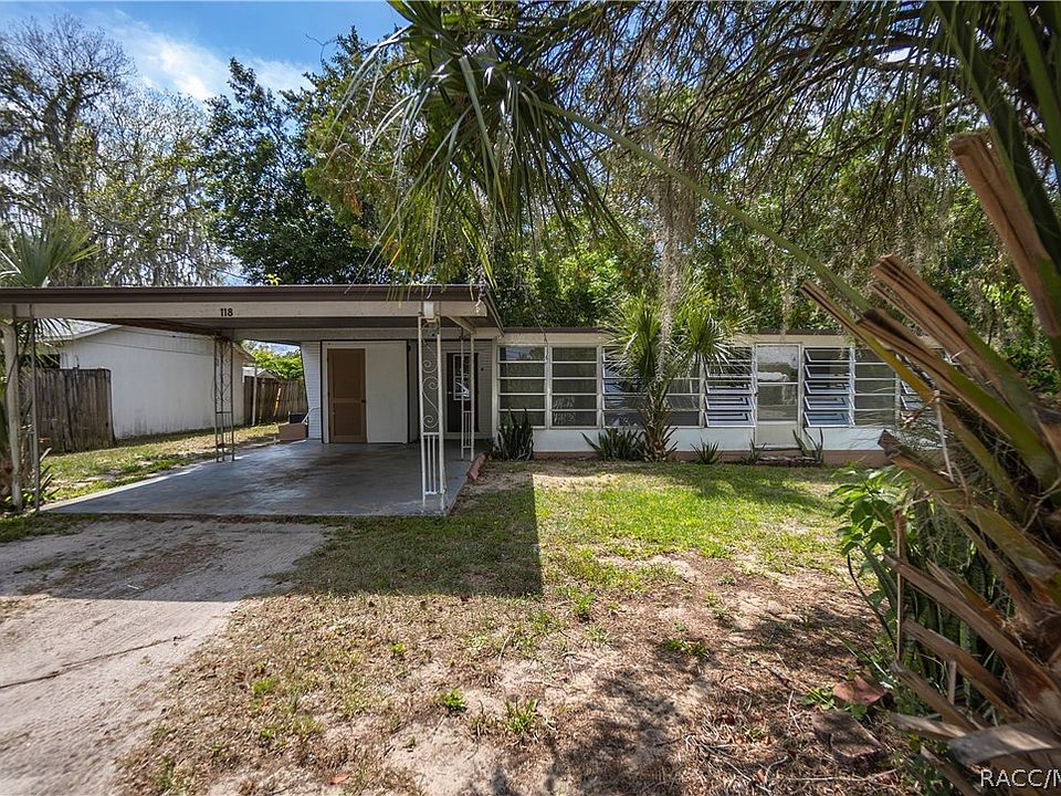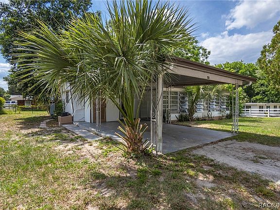 Just a stones throw from the Tsala Apopka Lake Chain and a short distance to downtown Inverness. This move in ready single wide is the pinnacle of affordability and functionality. Take a ride over and you will find it nestled on a point atop a nice hill crested style home site. Fee simple property NO LOT RENT REQUIRED. Paved road access. Unpaved driveway leading to the 14' x 24' attached aluminum carport with a concrete parking pad, an enclosed laundry area, and entryway gutters. Head over into the 8' x 33' enclosed aluminum screened porch boasting rap around crank out windows for a real open feel and a sliding glass door to the carport. The interior boast fresh paint. Updated Flooring though out. Lots of updated electrical work done. Newer appliances convey in the kitchen. Newer window and wall AC units throughout. Bathroom has been freshened up with newer fixtures, vanity, and an updated commode. The bedroom shows off thoughtful built-ins with a powder area and dual closets for maximum storage. Well pump and tank and water heater were replaced in 2019. The yard has plenty of space for parking or additional storage. Lots of cabbage palms, and native Florida trees are scattered around the property enhancing shade and ambiance. Quick access to the public boat ramps. Act now deals like this are fast to contract.