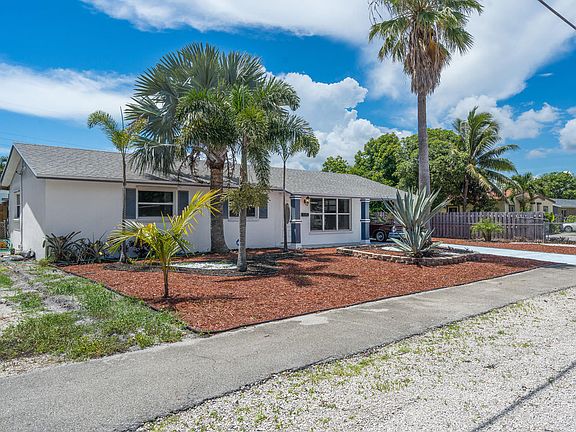 Welcome to this LARGE LOT, NO HOA Tropical Oasis in Boynton Beach! This 3/2 ''Florida style home'' boasts a large updated kitchen, granite countertops, kraft oak cabinetry with matching oak trim. Newer appliances with a builtin breakfast nook overlooking the large (15x30) pool (brand new pool liner) and tranquil water feature. The front and back of the property has been redone with a tropical Island feel including mature palms, lighting. All outdoor furniture is included with the sale (seating for 25). Large shed for storage. Plenty of parking for entertaining your guest. Must see to appreciate. Generator with built in shoebox connection in your new electrical panel. Crown and oversized base.