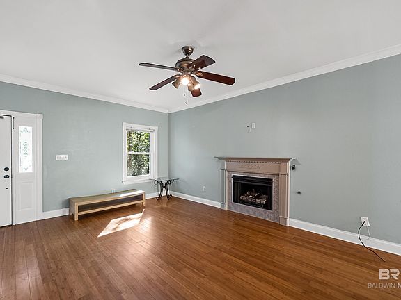 Traditional home located in Spanish Fort, offers an immaculate property with 3 bedrooms and 2 full baths. The home features a large front porch, spacious open living area, crown molding, bamboo flooring in the main areas, and split brick flooring in the kitchen. Additional highlights include a gas fireplace, nine-foot ceilings, a large kitchen with ample cabinet and counter space, a gas range, pantry, informal dining or breakfast area, and a beautiful primary suite with sitting area and walk-in closet. The split floor plan provides inviting extra bedrooms, while French doors lead to the back deck, great for entertaining. A carport is also included. Improvements include new windows, HVAC 1 year old, and Metal roof 2016. Buyer to verify all information during due diligence.