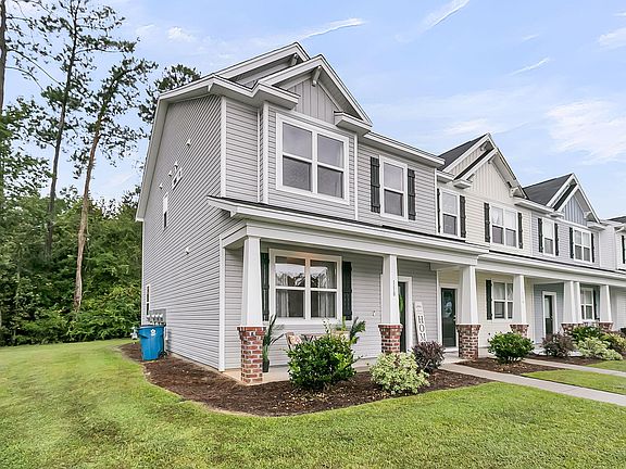 Located within the sought-after Dorchester II School District, this beautifully maintained 3-bedroom, 2.5-bath end-unit townhome offers the perfect blend of comfort, convenience, and low-maintenance living. Step inside to find deluxe LVP flooring that flows seamlessly through the foyer, kitchen, dining area, and powder room, complemented by 9-foot smooth ceilings that create an open, airy feel. The kitchen is beautifully equipped with granite countertops, 42'' cabinets, stainless steel appliances (including refrigerator, flat-top range, microwave, and dishwasher), and LED recessed lighting, offering the perfect mix of style and function. As an end unit, you'll enjoy extra windows for more natural light and an oversized lot with plenty of green space, perfect foroutdoor relaxation or playtime. A back patio and outdoor storage closet add even more function and convenience. Upstairs, the primary suite features vaulted ceilings, dual walk-in closets, and a dual-vanity bathroom. Two additional bedrooms share a well-appointed hall bath, offering plenty of flexibility for guests, family, or a home office. Additional highlights include tankless hot water heater, and washer and dryer that convey with the home. This property is truly move-in ready and designed for easy, low-maintenance living. The HOA covers landscaping, internet, and termite maintenance, so you can spend weekends enjoying life instead of yard work. Shady Oaks is ideally located with easy access to Dorchester Road, Joint Base Charleston, Boeing, shopping, dining, and the airport, making this home a perfect fit for those seeking both modern comfort and everyday convenience. Schedule your showing today!