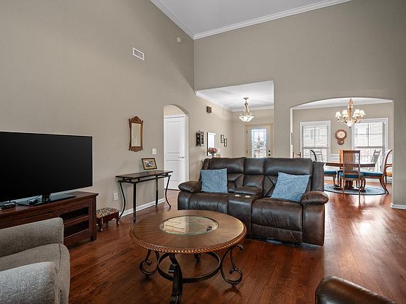A beautiful one level home in the gated community of Lakeshore Cove- a quiet community with a private lake, dock, pavilion with picnic tables, basketball court and walking trail for the residents. Open floor plan, two fireplaces, vaulted ceilings, and plenty of storage. The kitchen provides a huge island with bar seating, separate breakfast nook, and plenty of cabinets. Outdoor living area with stamped concrete, pergola, and fenced yard. The crawl space was recently encapsulated by AFS. The primary suite includes an extra sitting area with private fireplace- perfect for an office area or relaxing reading space. Note: The bathtub has been removed, but plumbing remains in place for future installation. You will also find extra shelving in the garage (seller is leaving 2 of the storage cabinets on the left wall), extra sink in the garage and a tankless water heater. Two HVAC units, one for each floor- were recently replaced in 8/2024 and 7/2020. This well cared for home will not last long! Call for a private showing today!