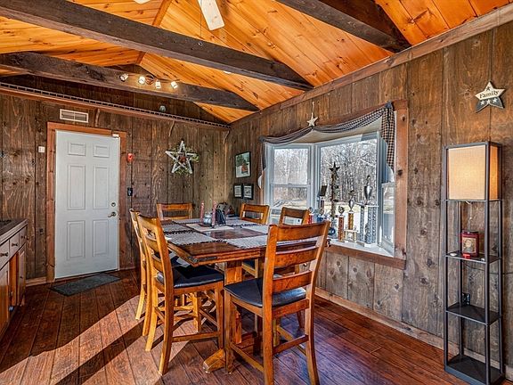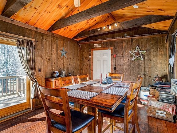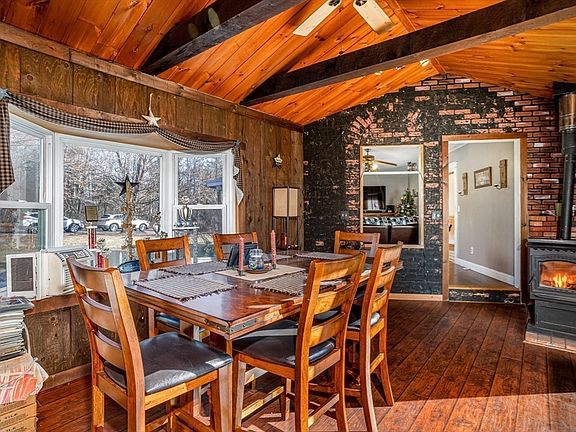 Location, Location, Location!!! Sprawling Sundrenched ranch located on a peaceful, less traveled road offering endless potential. Single level living at its best! This home boasts 4 bedrooms, 1 bath, bonus room above garage, charming details like wood ceilings, crown molding, a bay window and a cozy pellet stove to start! A must see! Spacious rooms. The kitchen and dining room each open to separate decks, creating great spaces for entertaining. Bring the outside in!! Enjoy 3 acres of peaceful mother nature! Enjoy morning coffee or afternoon drinks on one of your multiple decks. This home offers the ultimate blend of comfort and seclusion. The heated two car garage includes access to a finished bonus area above, (would be perfect for "man town" or office space), adding extra versatility. Newer furnace and flexible floor plan! Single level /One level living at its best! Come make this home your own!