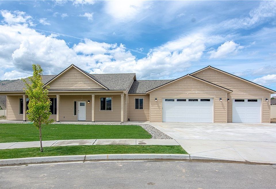 The comfort and flow of this home is just what you need with one level living! Master Suite with a large bathroom, walk in closet, Home upgraded with extra cabinets in Laundry, 9 Ft Vaulted Ceilings, Glass front electric fireplace, upgraded carpet & laminate flooring, Quartz counter tops throughout. Sit under the front or back covered patios and enjoy the view! Front yard landscape included & a 1 yr builder warranty.
