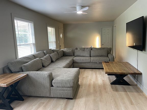 Inside, you'll find brand new laminate flooring throughout, setting a warm and modern tone. Both bathrooms have been completely remodeled, offering sleek fixtures and contemporary design. The kitchen is a showstopper, entirely gutted and rebuilt with all new cabinets, countertops, and a functional center island, ideal for entertaining or everyday use. The kitchen also features new stainless steel appliances, including a voice-activated range hood, induction range, large refrigerator, and dishwasher, designed with both style and practicality in mind. Additional upgrades include: Partial new electrical system, All new PEX plumbing, both inside and beneath the home, New overhead lighting throughout, Updated HVAC vents, New hot water heater, Updated washer and dryer hookups in the laundry room and crawl space has been fully waterproofed for peace of mind. Outside, the home features fresh exterior paint and a new roof installed in 2023, ensuring curb appeal and long-term durability. The back yard is like a park scene with the property line ending with a small flowing creek. There are deer wandering around the community which brings a peace while sitting on your large front or back porch! Additional support structures were added underneath the home, offering extra stability. This beautifully updated home won’t last long, schedule your tour today! Seller is also offering a 1 year home warranty for extra peace of mind. NO HOA.....Seller was going to paint or white wash the brick but left this for the new home owner and their dream.