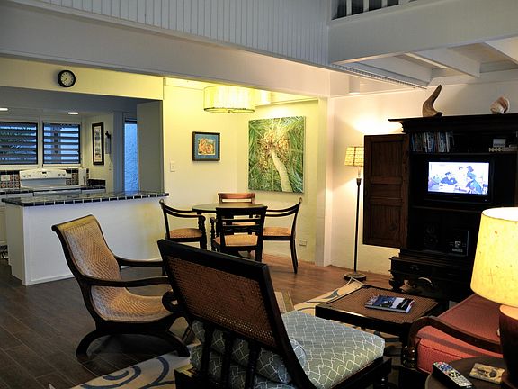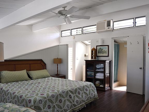 Beautiful resort condo. Available now. All upgraded and updated. Located in a gated community on the east end of St. Croix. This lovely loft apartment features a large pool, big views, great breezes. 9 hole golf course with golf carts and clubhouse, two tennis courts, Duggan's Reef an Island favorite for seafood and ocean front dining. Sandy beach. Inside the condo is a king size bed, washer and dryer, flat screen tv. Loft bedroom that looks down into the living room, dining area and fully equipped kitchen. There is a back porch with a pass through window to the kitchen and a grill.The front porch has a retractable shade and great views of the ocean and buck island. Front windows that have screens and open as windows or swing out like doors for wide open unobstructed views. Upgraded linen