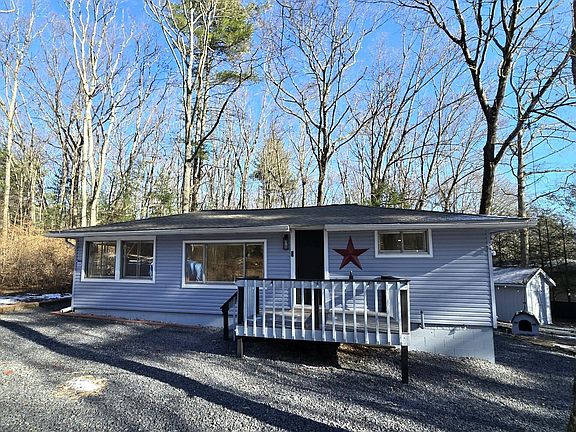 This beautifully completely renovated three-bedroom, one-bathroom ranch is ready for you to move in. The whole house is on one level... no steps. Inside you find luxury vinyl plank flooring throughout the home with a heated bathroom floor. Living rm, kitchen and bathroom also feature dimmable recessed lighting. Home also features a new roof, new siding, new electric, new plumbing, insulated floor joists, and heated crawl space. There is a brand new kitchen with designed new kitchen cabinets, quartz countertop, brand-new stainless-steel appliances with gas operated cooking stove and refrigerator ) with ice maker box) and a grand kitchen island. The large bathroom features radiant heated flooring, a glass enclosed shower, and a smart mirror, along with a conveniently placed washer/dryer hookup. The three bedrooms offer plenty of space for family and friends. Windows throughout the home allow abundant natural light to fill the space and high ceilings in two bedrooms and living room enhance it. The home also has a beautiful custom electric fireplace, just in time to use for the holidays. Wi-fi alarm system and private gun safe are already installed too. Outside is just as nice with a new gravel driveway and professional landscaping . Also, a shed for all of your extras and even a little dog house for your pet. Discover the modern touches that make this property an ideal retreat or primary residence. Don't forget to bring ingredients for s'mores and enjoy them around the outdoor firepit.. Fun-filled activities are nearby, close to Milford, PA, and just minutes from the NJ border. Perfect for first-time buyers, retirees, or a vacation home. Winter, spring, summer, or fall come and have it all on one floor at 118 Tulip Street. You must see this property in the amenity-rich Birchwood Lakes! Out with the old and in with the new and the price is right.