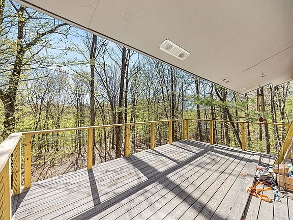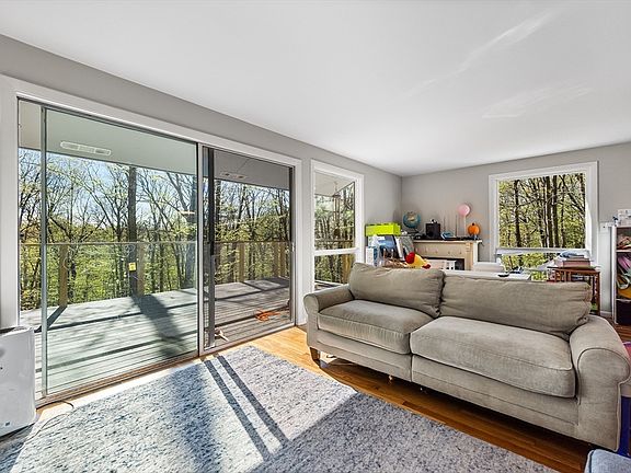 This gorgeous, smaller mid-century modern home, like something from Dwell, boasts an open flow with refinished hardwood floors in the spacious living/dining area and both bedrooms. Featuring many recent updates, including a high-end basement floor, a deck redone with composite decking and cable railings, and new vanities in both bathrooms (the downstairs bathroom also has a new tile floor and backsplash), it offers a bright kitchen with updated appliances and a breakfast bar overlooking the lovely backyard. A newly installed microwave above the stove adds convenience, and the water filtration system and 3-bed septic system are both just a few years old. The first floor includes two bedrooms and a full bath, while the sun-drenched walk-out lower level offers a large family room, a third bedroom, an office, and another full bath. Enjoy a rear shed for storage, a spacious deck, a lower-level patio, and a newer water heater. There is nothing to do but move in!