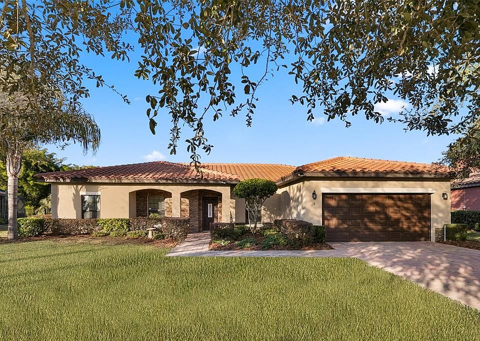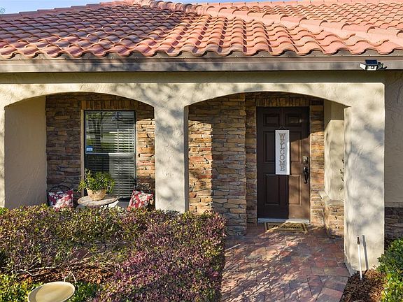 One or more photo(s) has been virtually staged. This home is located in the guard gated upscale community of Riviera Bella located along the sought after St. Johns River. Features include a private boat ramp for community use only, a clubhouse that can also be rented for private parties, large pool, gym, splash pad, and playground! The beautiful scenery in the neighborhood is great for biking, running, or just taking that evening stroll to take in nature. Owners have loved the large fenced in backyard that features a screened in patio, extra area with pavers for a gazebo, cooking area, or just sitting outside to watch the stars at night with no rear facing neighbors. The backyard also allows pets to run and play safely, along with entertaining friends and family. This 4-bedroom, 2 -bathroom split floor plan features granite countertops, 42-inch cabinets, 18-inch ceramic tile flooring, gas appliances (a rare find), a top of the line one year old refrigerator with a wine rack inside and a premium grade washer and dryer with a ton of cool features. This home has crown molding, a trey ceiling in primary bedroom, huge walk-in closet, large bathrooms and a ring doorbell system throughout the home with a panic button feature in case of emergency. The location is close to I-4, Sunrail Station, nature trails, shopping, Swamp House Grill restaurant that has that hometown charm with a public boat ramp, and central to beaches and amusement parks. Must see this beautiful home in person in order to feel the tranquility of Riviera Bella living!