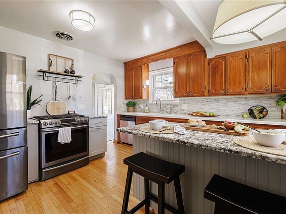 Partially finished basementSpacious primary bedroomBuilt-in barWood-burning fireplaceArched doorwaysHardwood floorsGranite countertops