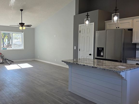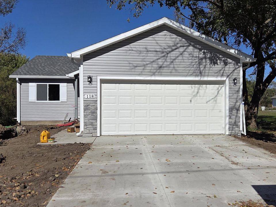 This lovely new build by Poe Homes offers lots of natural light, open concept and convenient one floor living. Upon entering, you will see vaulted ceilings with a spacious living room that leads to a new kitchen with granite countertops, an eat-in island, pantry, new stainless steel appliances, and a dining space. The main floor primary suite has a large walk-in closet and ensuite with granite countertops, double sinks, and a walk-in shower. There are two more bedrooms and a full bathroom with granite countertops. To add to the convenience of this home, there is also a main floor laundry room. Downstairs you will find a full daylight basement ready to be finished to your desire and build some equity! There is also an egress window and a rough in for a bathroom. Inside the 2 car attached garage, there is a brand new John Deer riding lawnmower that goes with this home! The large backyard backs onto dense trees and greenery making for a lovely view off your deck.