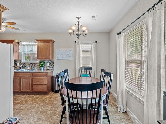 Welcome to this adorable and updated home located in the heart of Augusta, KS—just a short walk to both the local elementary and middle schools! This 3-bedroom, 1-bathroom home offers a smart layout perfect for families, with a spacious living room that's ideal for relaxing or entertaining. You'll love the thoughtful details throughout, including custom tray ceilings in the bedrooms, adding a touch of character and style. The large master bedroom features a walk-in closet for ample storage. The kitchen boasts newer cabinets and appliances—all of which transfer to the buyer—providing both functionality and value. Outside, enjoy a fully fenced backyard with chain-link fencing, a patio area great for summer evenings, a convenient storage shed, and a large covered parking spot. This home is clean, move-in ready, and priced to sell quickly—don’t miss your chance to make it yours!