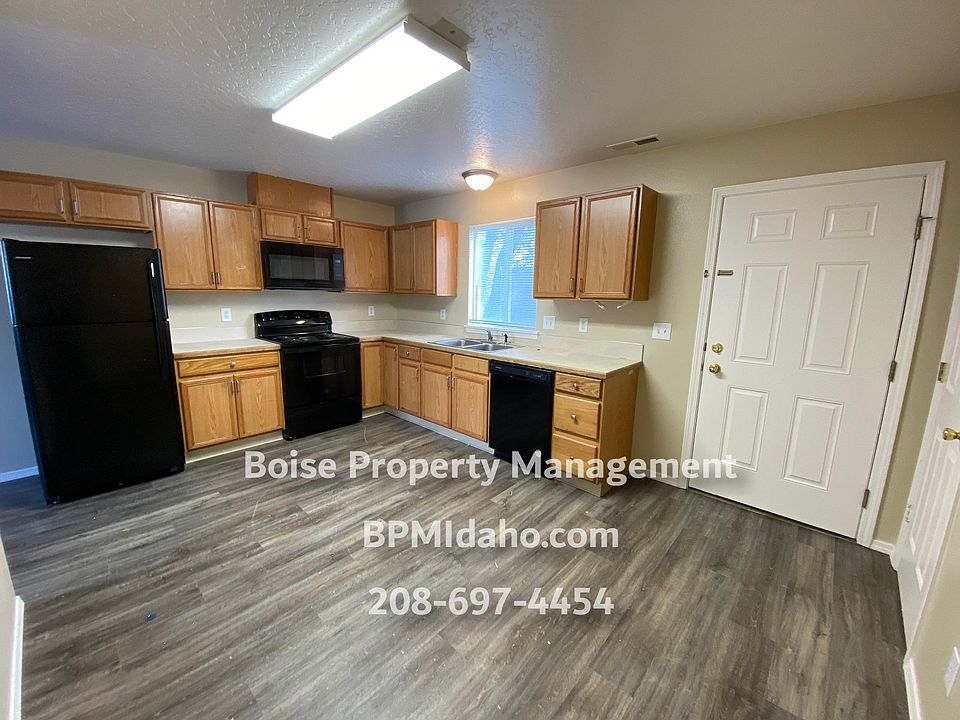 This unit centrally located in Nampa features a large living area with natural light, leading to the kitchen with luxury vinyl flooring, matching appliances, and the back door. Downstairs you will also find the guest half bathroom. Off of the living area is the stairs, upstairs to the right you will find the main suite, separated from the other bedrooms by the full bathroom and laundry. To the left you will find the remaining two bedrooms. Both include large windows and a gracious closet. The laundry is continently located between all the bedrooms, next to the full bathroom upstairs.